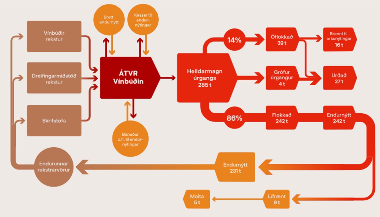 Úrgangur hjá Vínbúðunum árið 2025
