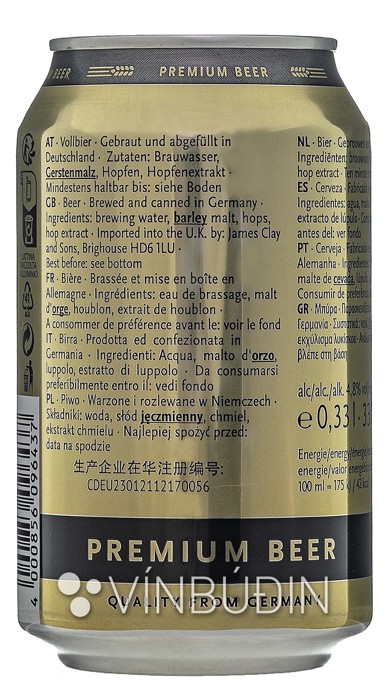 Ljósgullinn. Ósætur, léttur, meðalbeiskja. Hvítt brauð, brauðskorpa, blómlegir humlar.