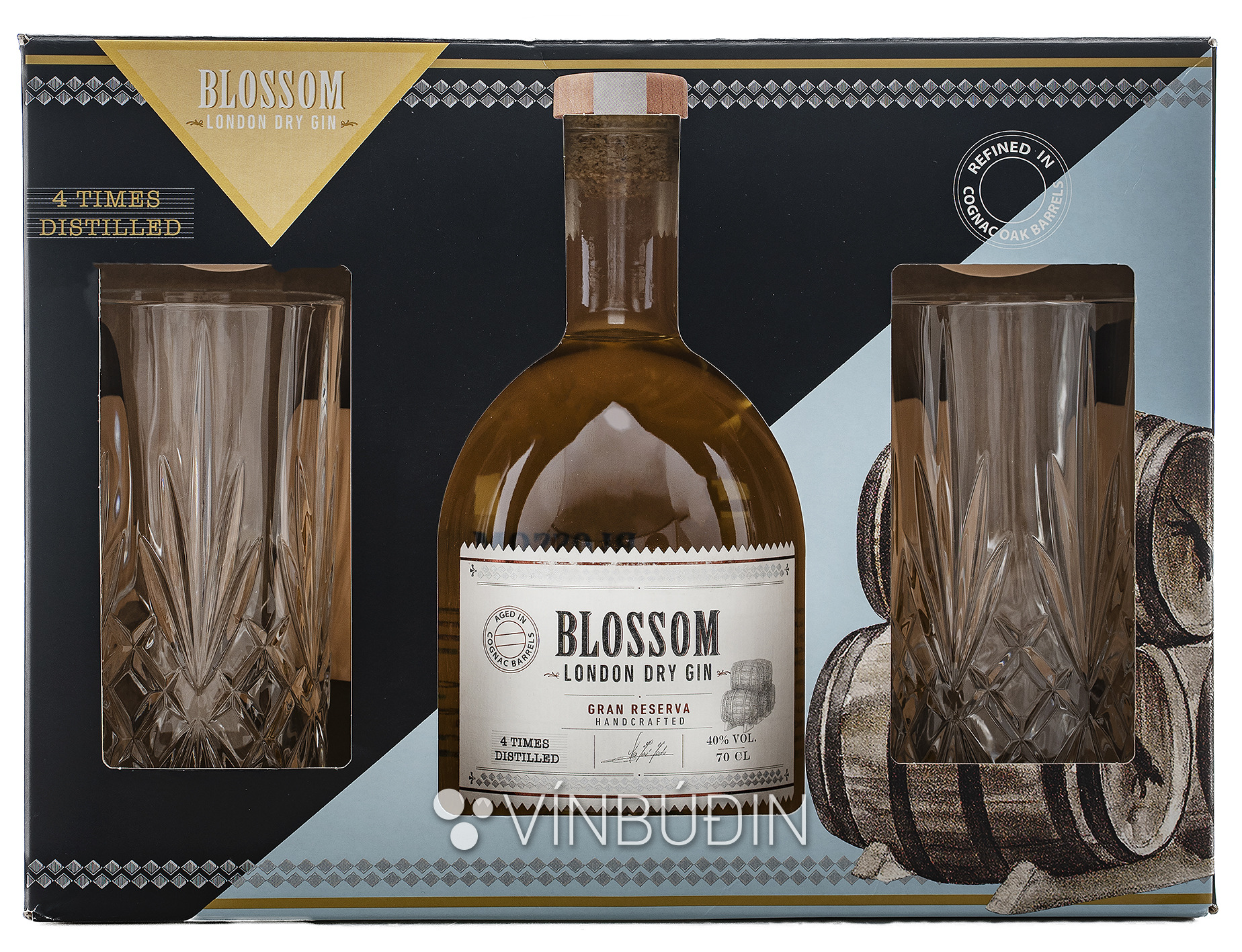 Blossom London Dry Gin með tveimur glösum